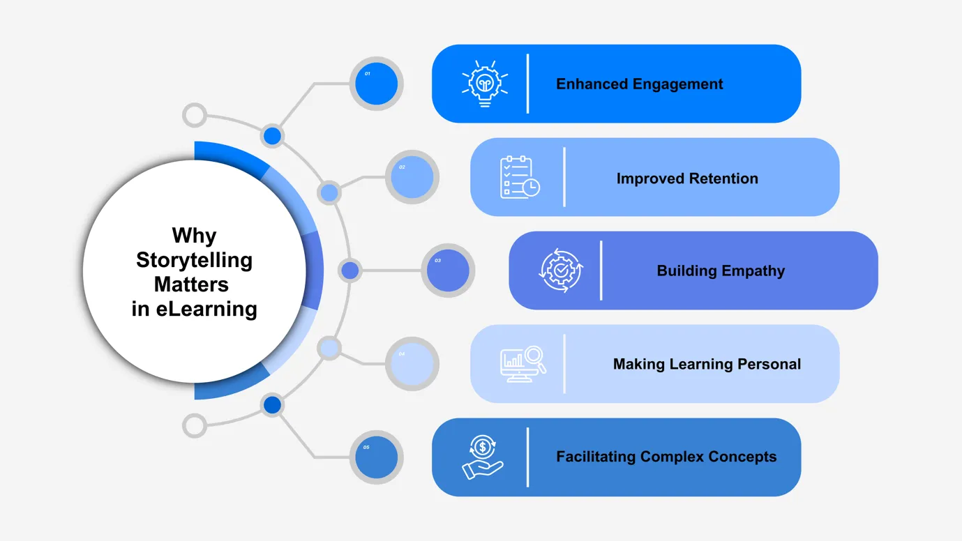 - Building Empathy Stories foster empathy by allowing learners to see the world from different perspectives. In eLearning, this can be particularly valuable in courses focused on diversity, ethics, leadership, or customer service. Through storytelling, learners can experience scenarios from various viewpoints, leading to a deeper understanding and appreciation of the subject matter.